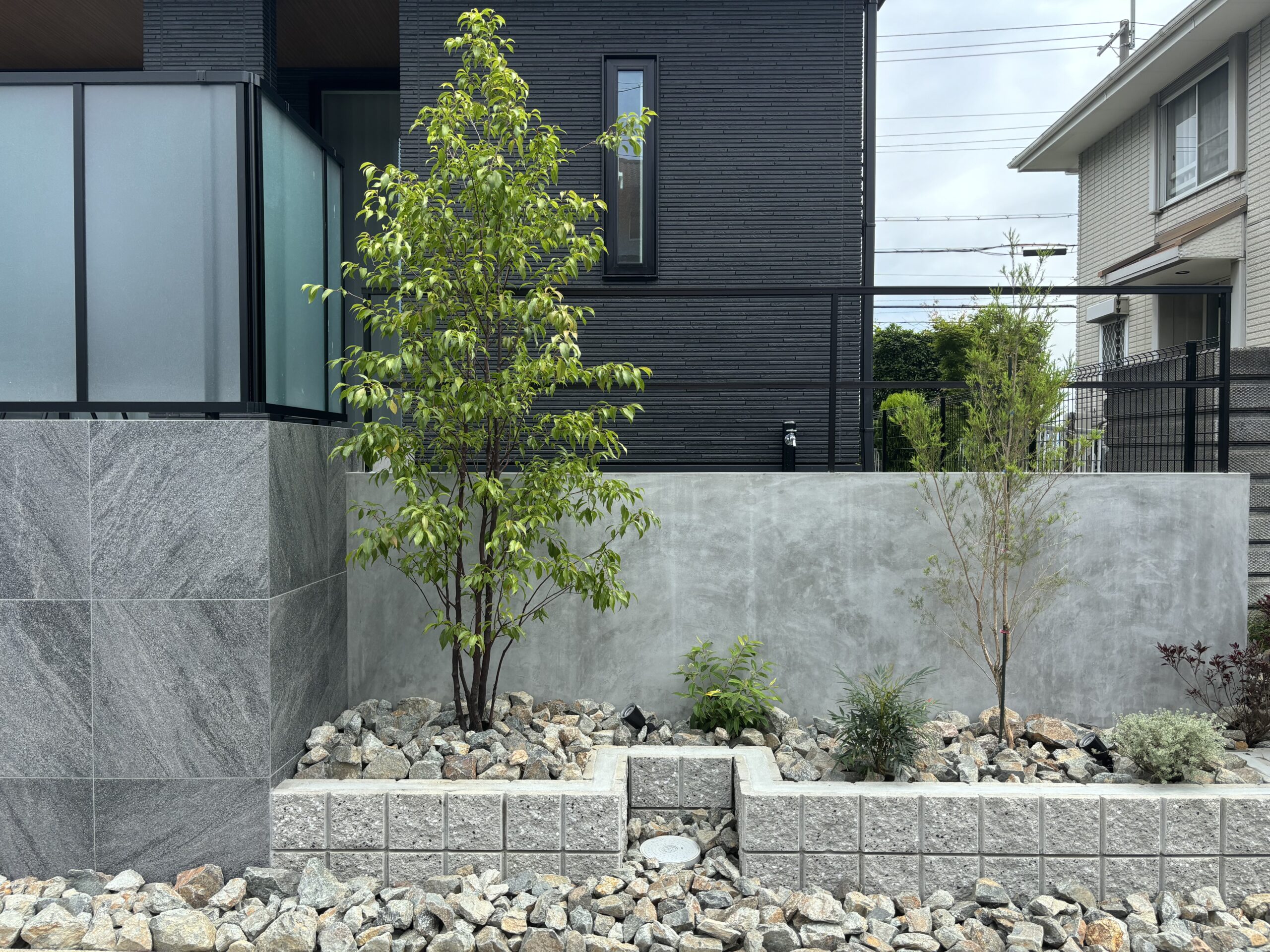 M様邸 ご新築外構工事 2025.04.21NEWGARDEN, Uncategorized, WORKS M様邸 ご新築外構工事 ―――before――― 施工途中です。 ―――after――― シンプルで明るく涼しげなデザインでありながらも丈夫で、 境界を区別し、光を取り込みながら目隠しすることができる。 転落防止やプライバシーや防犯目的にも優れている LIXILのフェンスAB YT1型採光パネルを使用しました。 カラーモルタルでアクセントを。 宅配ボックスは内側へ入れこむ事で生活感を無くします。 オシャレな浮き階段でゆったりと上り下りできます。 暗くなってもしっかりと目隠しされるのでカーテンを開けて開放的な生活を楽しめます。 軒天に映るモミジの影を眺めながらくつろぎの空間。 第2のリビングとして朝食を食べるも良し 夜にゆっくりするも良し素敵な憩いのスペースです。 こげ茶色の枝がかっこいいエゴの木はお子様が選んでくれました。 お水やりも頑張ってくれているようです。 ライトアップで光の暖かさを感じ癒されますね。 投稿者: 53c48847 NEWGARDEN, Uncategorized, WORKS F様邸 ご新築外構工事 T様邸 ご新築外構工事 関連記事一覧 K様邸 ご新築外構工事 N様邸 ご新築外構工事 T様邸 ご新築外構工事 N様邸 ご新築外構工事 T様邸 ご新築外構工事 Y様邸 ご新築外構工事 U様邸 ご新築外構工事 K様邸 ご新築外構工事 S様邸 ご新築外構工事